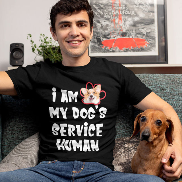 Custom Photo Short Sleeve T-shirt – I am Dog’s Service Human Pet Lovers T-shirt