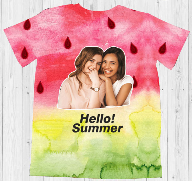 Custom Photo Hello Summer T-shirt | Personalized Beach T-shirt – Cute Watermelon
