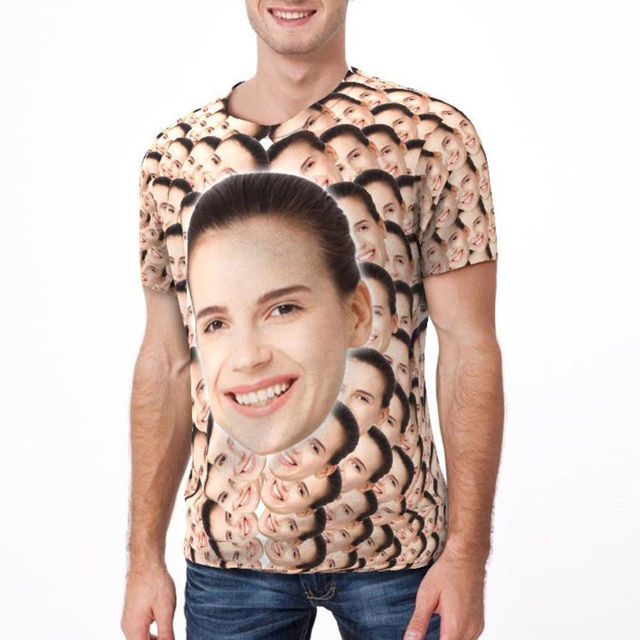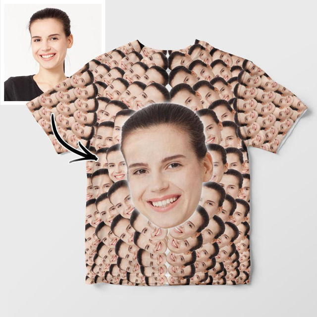 Custom Photo Short Sleeve T-shirt – Personalize Avatar Repeat Face T-Shirt