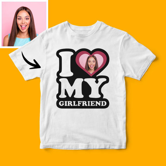 Custom Photo Short Sleeve T-shirt – I Love My Girlfriend Personality Style T-Shirt