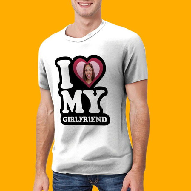 Custom Photo Short Sleeve T-shirt – I Love My Girlfriend T-Shirt for Men with Personalized Graphic