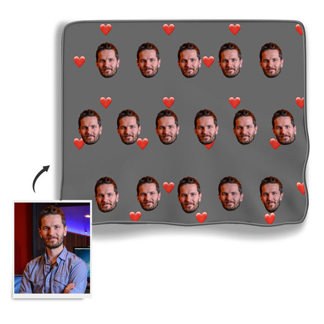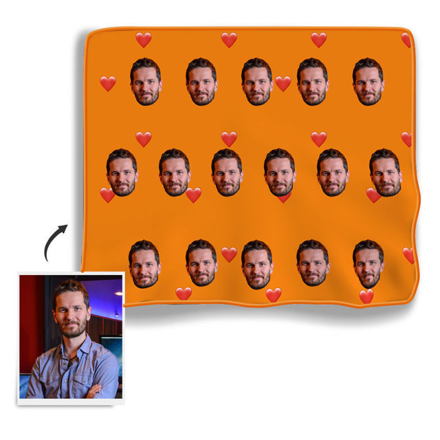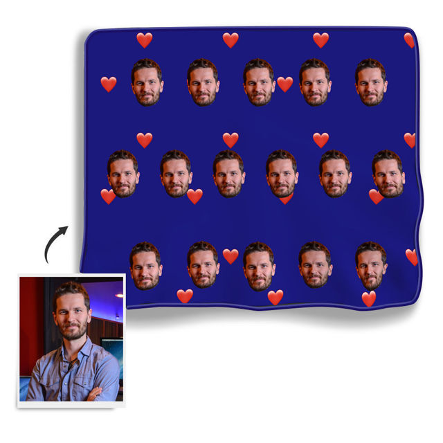 Colorful Custom Fleece Face Blanket With Heart | Best Gifts Idea for Birthday, Thanksgiving, Christmas etc.