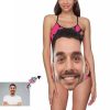 Costume Funny Face leopard Print Women’s Bikini One Piece Suit – Multi Face Swimwear for Bachelorette Party – Summer Best Gift