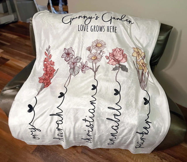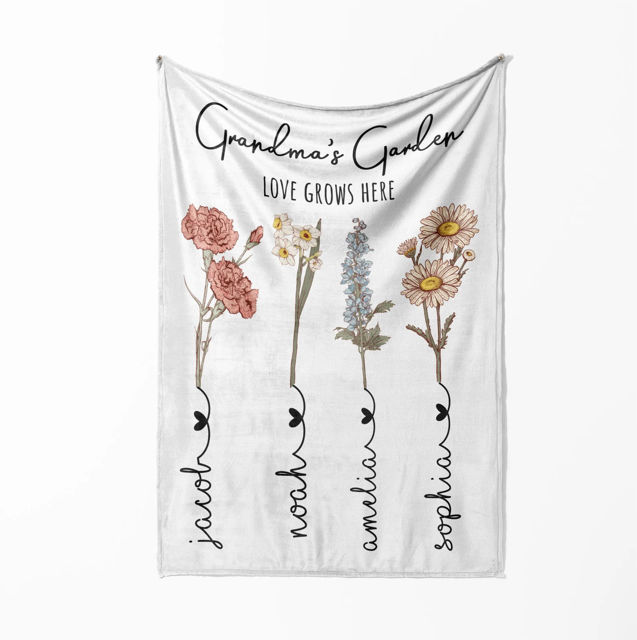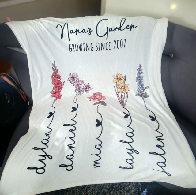 Custom Birth Flower Blanket | Personalized Name Blanket for Family | Best Christmas Gift for Mummy
