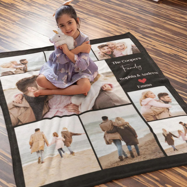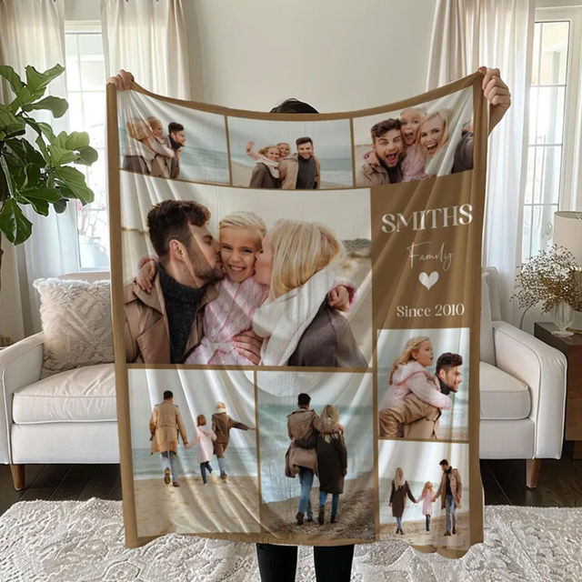 Custom Family Photo Blanket – Personalized Blanket with Family Name – Best Birthday Gift