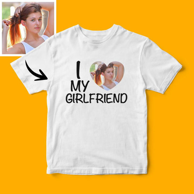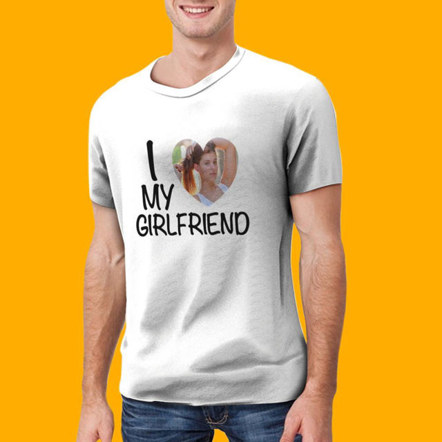 Custom Photo Short Sleeve T-shirt – I Love My Girlfriend T-Shirt for Men with Personalized Graphic