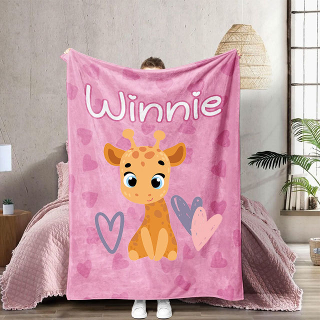 Personalized Name Blanket for Kids | Custom Name Blanket for Boys and Girls | Personalized Name Blanket with Cartoon Animal Pattern
