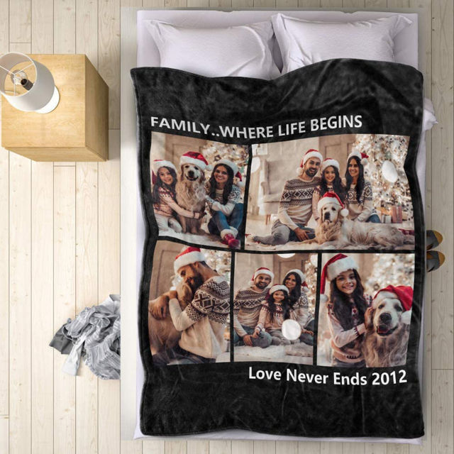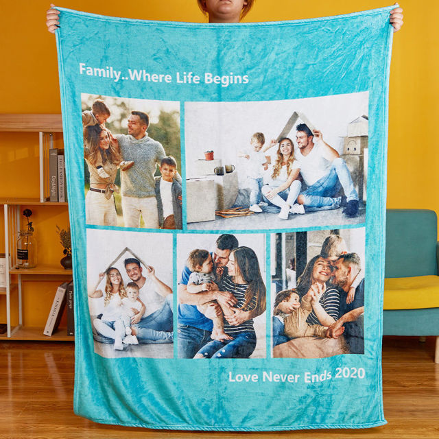 Personalized Photo Blankets | Custom Family Love Blanket With 5 Photos Make Your Own Blankets | Best Gifts Idea for Birthday, Thanksgiving, Christmas etc.
