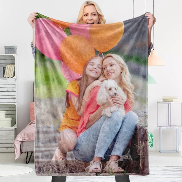 Wrap yourself in memories with our custom photo blankets. Made from soft, cozy materials, these blankets feature vibrant, high-quality printing of your favorite photos. Perfect for snuggling on the couch, draping over a chair, or adding a touch of personalized decor to your home, our photo blankets make cherished gifts for loved ones or a special treat for yourself. Transform your precious memories into lasting comfort with our custom photo blankets. PHOTO GUIDE: -Ensure we can clearly see their face and nothing is cut off. -Don’t upload low resolution, blurry or pixelated photos. -The better quality photo, the better your Ensure we can clearly see their face and nothing is cut off. -Don’t upload low resolution, blurry or pixelated photos. -The better quality photo, the better your blanket will be! Material:Flannel Color:Multicolor Weight:280-990g Style: Single-Sided Printing